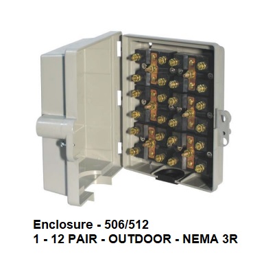 Heavy-Duty Transient And Power Fault Protection Ultra-Violet And Weather Resistant Nema 3R/Ul 94 V Rated Enclosure Accepts 1356 Gas Tube Or 1360 Solid State Station Protector Modules. Includes Flexible Rubber Grommet At Wire Entrance Ul 497 Tested And Certified Available In 1 - 30 Pair Configurations Includes Universal Mounting Screws