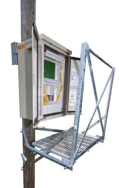 Gmp 79283 Balcony Cabinet D Our Newest Pole Mounted Work Platform, The General Machine Products D Cabinet Balcony Was Designed To Accommodate The New Generation Of Fiber Optic Based Cabinets As Well As The Existing Line Of Cross Connect Cabinets.