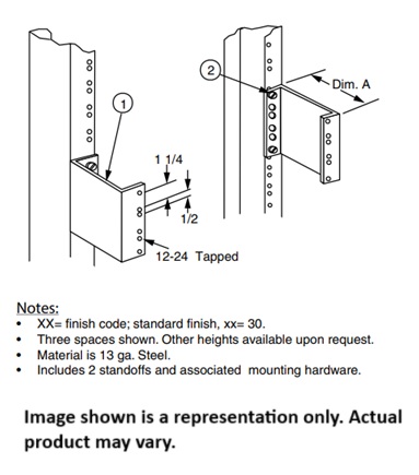 Ton/Cooper B-Line 0040720830 Rack Standoff For Equipment Rack 1-3/4 Inch Mounting Spaces: 30 Dimension A: 5 Inches