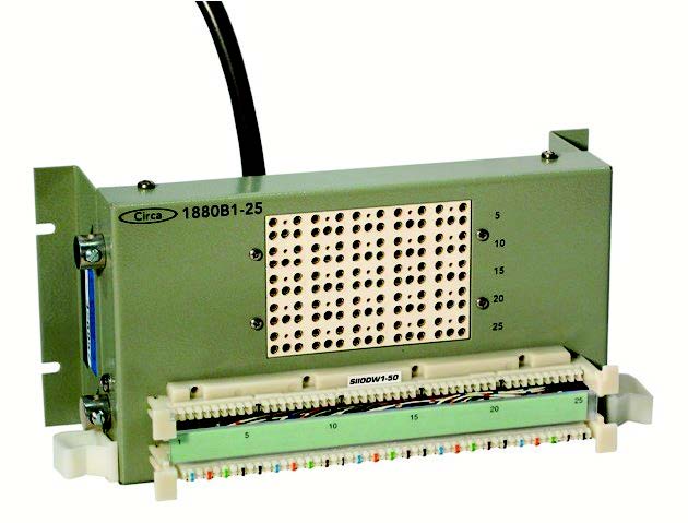 Circa Telecom 1880B1-25 25Pr Stub/110 Terminal Building Terminal New 25 Foot Cable Stub Input And 110 Connector Output Protects Up To 25 Lines, Also Available In 50 Pair (1880B1-50) And 100 Pair (1880B1-100) Configuration. Built-In Stand Off Bracket Allows For Easy Distribution Cable Routing, 26 Awg Swivel Stub Serves As Fuselink, Stackable To Allow For Future Service Expansion, External Ground Connectors Accept 6-14 Awg Ground Wire, Accommodates Industry Standard 5 Pin Protection Modules (Sold Seperately), Plastic Components Meet Or Exceed Specifications Set Forth In U.L. 497