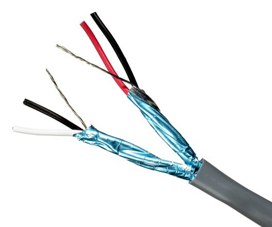 Pair Count: 2 Awg: 24 Solid/Stranded: Stranded Stranded Copper: 7/32 Insulation: Polypropylene, .023" Shield: No Jacket Type: Pvc Jacket Color: Chrome Gray Overall Diameter: .294" Other Details: Drain Shielded Pairs