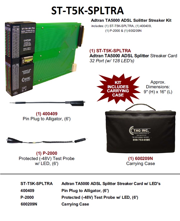 Tag Kit-T5K-Spltra Adtran Ta5000 Adsl Splitter Streaker Kit