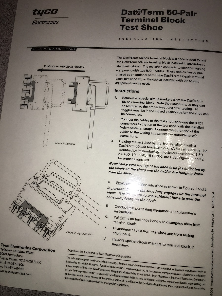 Tyco Dat@Term 50 Pair Terminal Block Test Shoe (Repaired) Apics Davar