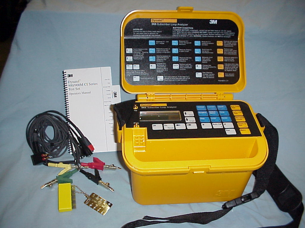 3M Dynatel 965I Subscriber Loop Analyzer Repaired 965/I Wideband Subscriber Loop Analyzer The Dynatel 965/I Wideband Subscriber Loop Analyzer Performs All The Tests Needed To Analyze And Troubleshoot Subscriber Loops, As Well As Provide Line Pre-Qualification Tests For Basic Rate Isdn Service. In Addition, The 965/I Wideband Loop Analyzer Uses Combinations Of These Measurements In Automatic Functions Called Dc Line Test And Ac Line Test. In These Test Sequences, The Microprocessor Of The 965/I Loop Analyzer Interprets The Results Of The Measurements And Leads The Operator These Lightweight, Highly-Accurate Weather-Resistant Units Are Used In International Applications Between The Telephone Exchange And The Subscriber’S Premises.
