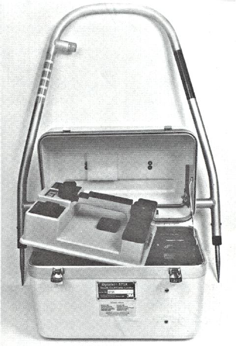 The Dynatel 573 Precisely Locates Sheath Faults, Buried Cable Paths And Measures Cable Depth, Directly Or By The Traditional Triangulation Method, To Allow For Accurate, Efficient Excavating. The 573 Is Easy To Operate, And Requires Very Little Training. The Unit Consists Of Three Basic Components: Transmitter With Built-In Volt/Ohmmeter/Output Level Meter , Hand-Held Receiver With Color-Coded Fault-Location Reference Meter And Audible Cable-Location Signal And Meter Indication , Earth Contact Frame-Color-Coded To Correspond With Recond With The Meter, Indicating The Direction To The Fault, Used Only When Locating Sheath Faults