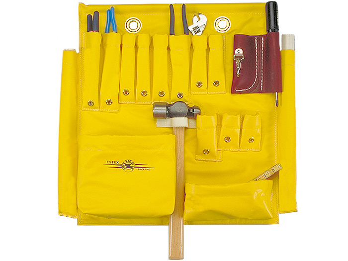 Estex Has Designed A Series Of Tool Aprons With Multiple Pocket Configurations To Fit Inside The Bucket. They Were Designed To Fit Flat Against The Liner To Minimize Interference With Line Work Yet Maximize A Linemen'S Ability To Reach The Necessary Tools. Each Apron Has A Non Conductive Rod In The Top For Support As Well As Two Brass Grommets.