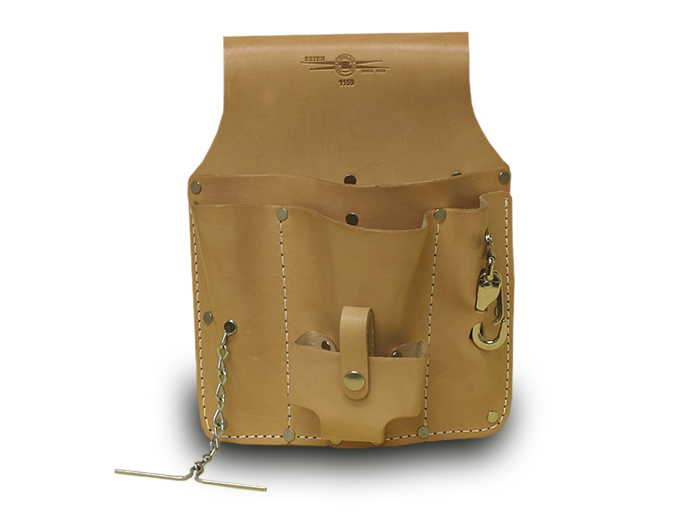 Estex 1159 Leather Tool Pouch, 7 Pkts.Tape Thong, Tunnel Loop, Snap, Tape Meas 14 Oz. New Leather Tool Pouch, Belt Loop, 5-Pocket