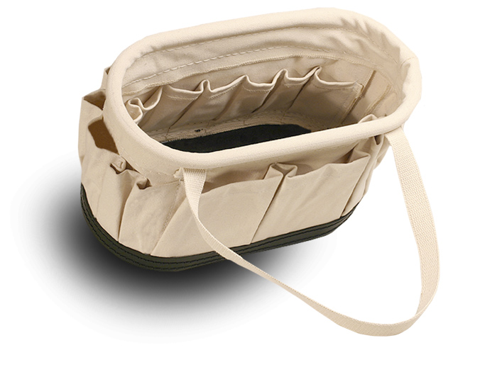 Product Details This Bucket Has Two Handles, 15 Inside And 14 Outside Pockets To Organize All Your Tools. The Fabric Is Heavy Duty Natural Duck Which Is Extremely Abrasion And Cut Resistant. There Is A Heavy Pvc Top Ring To Keep The Bag Open And A Molded Plastic Bottom.