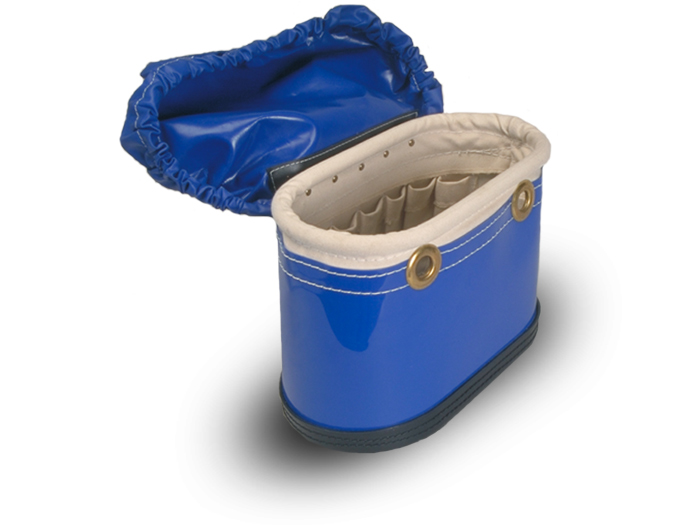 Product Details This Oval Shaped Tool Bag Hangs On The Aerial Lift Bucket With Attachment Hooks. There Is A Pvc Ring In The Top To Shape The Opening And Hard Body Plastic On The Sides To Keep The Bag Open And Rigid. Six Hand Tool Pockets On The Inside Of The Bag Organize Tools For Easy Access. Holes For Attachment Hooks Are Reinforced With Brass Grommets. The Bag Has A Sturdy Plastic Bottom With Drainage Holes. A Vinyl Cover Is Attached To One Side Of The Bag And Has Bungee Cord In The Hem To Keep The Cover On The Bag While In Transit. The Cover Keeps Rain And Dirt Out And Tools In.