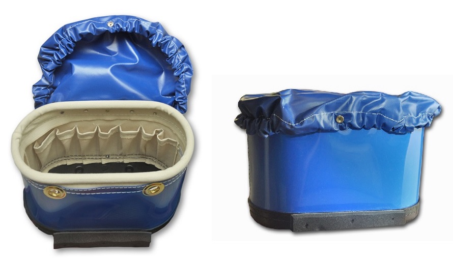 Part # 1820-Hbcs1 Description Aerial Tool Bucket W/Hard Body & Attached Cover Heavy Canvas Oval Bucket, Hard Body Plastic Liner 15 Inside Pockets, Cover Size:15 Inch L X 7 Inch W X 9 Inch H Weight 2 Lbs. 13 Oz.