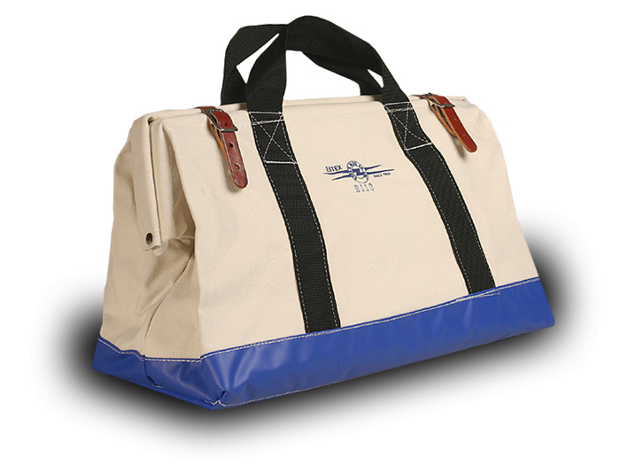 Product Details This Tool Bag Is Constructed With Heavyweight #4 Canvas Duck. The Top Opening Has A Steel Frame To Keep The Bag Open And Provide Security When Closed. Two Leather Straps Secure The Opening. 2" Web Handles Wrap Around The Entire Bag For Added Strength. They Have A "Box X" Stitch At The Top For Extra Strength. The Bottom Is Reinforced With Heavy Vinyl Coated Nylon And Has A Double Tempered Masonite Board. Six Brass Studs Are Placed On The Bottom Of The Bag To Protect Against Abrasion. There Is One Inside Pocket In This Bag.