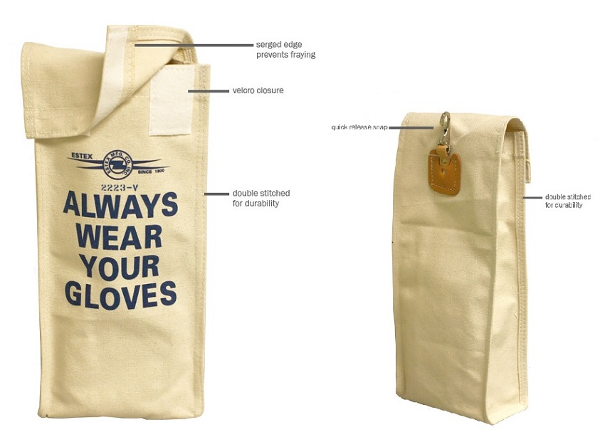 Estex 2223-V Glove Bag, Canvas, Hook And Loop Closure, 18 Inch X 8 Inch X 4 Inch New