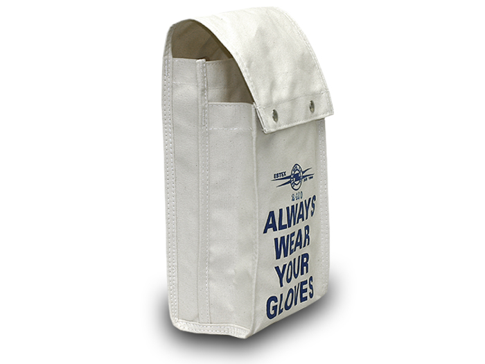 Product Details This Is A Two Pocket Bag For Gloves And Sleeves. The Sleeve Pocket Is 8"X2"X14" And The Glove Pocket Is 8"X4"X13". There Is One Flap Over The Top Of Both Pockets Secured With Snap Fasteners. The Bag Is Made From Heavy Canvas. There Is A Quick Release Snap On The Back For Belt Attachment. It Is Supported By Leather Onthe Inside And Outside Of The Bag. There Are Grommeted Drainage Holes Inthe Bottom.
