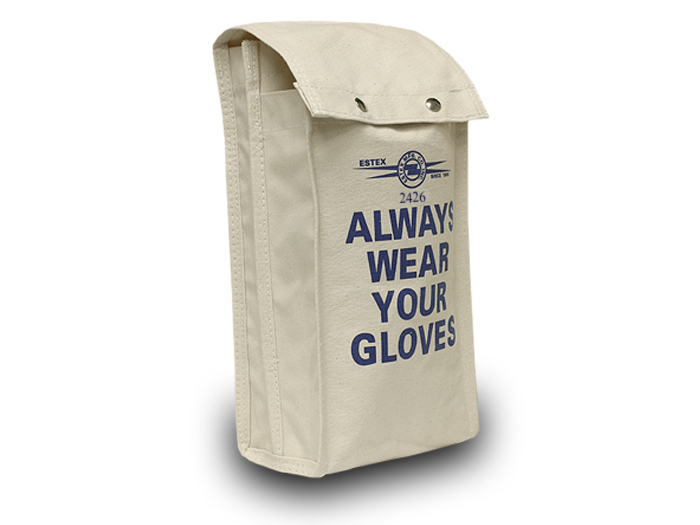 Product Details This Is A Two Pocket Bag For Gloves And Sleeves. The Sleeve Pocket Is 8"X2"X18" And The Glove Pocket Is 8"X4"X17". There Is One Flap Over The Top Of Both Pockets Secured With Snap Fasteners. The Bag Is Made From Heavy Canvas. There Is A Quick Release Snap On The Back For Belt Attachment. It Is Supported By Leather Onthe Inside And Outside Of The Bag. There Are Grommeted Drainage Holes Inthe Bottom.