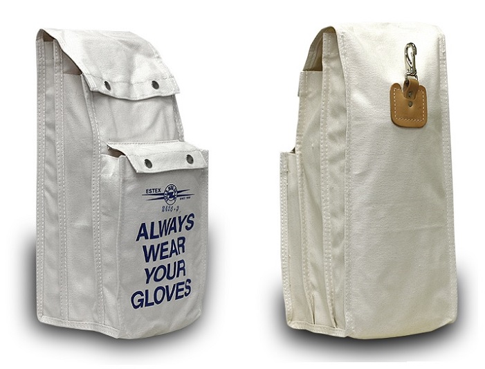 Part # 2426-3 Description Tri-Pocket Canvas Glove And Sleeve Bag Material Heavy Canvas Quick Release Snap On The Back Snap Fasteners Grommeted Drainage Holes Size 18 Inch X 8 Inch X 9 Inch Weight 1 Lb 7 Oz This Is A Three Pocket Bag For High And Low Voltage Gloves And Sleeves. The Sleeve Pocket Is 8"X2"X18" And The Glove Pocket Is 8"X4"X16" And The Low Voltage Pocket Is 8"X2"X12". There Is One Flap Over The Top Of The Sleeve And High Voltage Glove Pockets Secured With Snap Fasteners. There Is Also An Extra Pocket On The Front For Low Voltage Gloves. It Has A Flap Secured With A Snap.The Bag Is Made From Heavy Canvas. There Is A Quick Release Snap On The Back For Belt Attachment. It Is Supported By Leather Onthe Inside And Outside Of The Bag. There Are Grommeted Drainage Holes In The Bottom.