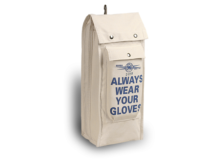Product Details This Is A Two Pocket Bag For Gloves And Sleeves. The Sleeve Pocket Is 8"X2"X20" And The Glove Pocket Is 8"X4"X18". There Is One Flap Over The Top Of Both Pockets Secured With Snap Fasteners. There Is Also An Extra Pocket On The Front For Goggles, Safety Glasses Or Glove Dust. It Has A Flap Secured With A Snap.The Bag Is Made From Heavy Canvas. There Is A Quick Release Snap On The Back For Belt Attachment. It Is Supported By Leather Onthe Inside And Outside Of The Bag. There Are Grommeted Drainage Holes Inthe Bottom.