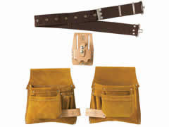 Leather Construction. Large Pockets Have Rolled-Over Doubled Edges For Extra-Long Life. All Pouches Slide Along Belt For Convenient Working Position. Left- And Right-Hand Nail-And-Tool Pouches. Fully Adjustable Polyweb Belt (32" - 48"). Tape-Rule Holder For 20' And 25' Tape Measures With Belt Clips. Heavy Hammer Loops.