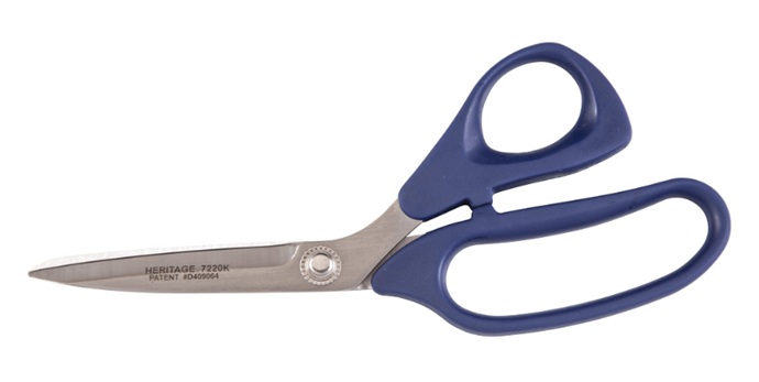 The Klein Tools Cat. No. G7220K Scissors Are Bent Trimmers That Feature Stamped Stainless Steel Precision Ground Blades. It Has A Soft Blue Handle With Extra Large Bottom Ring That Allows The Operator To Cut For Long Periods Of Time Without The Usual Cramping Of The Hands. It Can Be Used Right- Or Left-Handed.