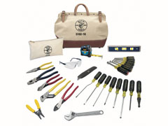 A Great Assortment Of Tools For The Electrician. Contains One Side-Cutting Pliers, One Diagonal-Cutting Pliers, One Long-Nose Pliers, One Pump Pliers, One Adjustable Wrench, Two Keystone-Tip Screwdrivers, Two Cabinet-Tip Screwdrivers, One Wire-Bending Screwdriver, One Square-Recess Tip Screwdriver, One Rapi-Driv® Screwdriver, One Conduit-Fitting & Reaming Screwdriver, Seven Nut Drivers, One Power-Return Rule, One Torpedo Level, One Crimper/Cutting Tool, One Wire Stripper/Cutter, One Utility Knife, One Protective Eyewear, One Canvas Zipper Bag, One 16" Canvas Zipper Bag.