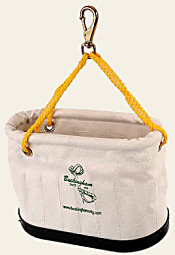 GENERAL MACHINE PRODUCTS 12162 BUCKET OVAL 15 INSIDE POCKETS- NEW Used to transport tools from the ground to an aerial perch, each of the 12 in. (305 mm) H heavy canvas buckets has a tough vulcanized rubber bottom and reinforced steel ring mouth to give you years of heavy-duty use.
