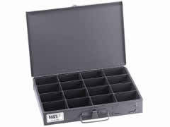 Klein Storage Boxes Are Offered With A Choice Of Compartment Sizes And Arrangements. Boxes Feature Strong, Rigid, Heavy-Duty Welded Construction. Full-Length Piano Hinged Covers Are Designed To Stay Open For Ease Of Access. Each Box Has A Carrying Handle, Positive Pull-Down Locking Catch. Boxes Have A Heavy, Metallic-Gray Baked-Enamel Finish. Box Compartments Feature High-Impact Styrene Construction. Scoop-Bottom Design For Easy Parts Removal And Cleaning. Fits Either Four-Drawer Slide Rack Cat. No. 54474 Or Six-Drawer Rack Cat. No. 54476.