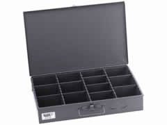 Movable Dividers In This Parts Box Allow Compartment Sections To Be Arranged And Sized As Desired. Three Partitions, Running From Front To Back, Divide The Box Into Four Equal 4-1/2"X12" (114 Mm X 305 Mm) Sections. Nine Straight Metal Dividers Can Be Positioned Anywhere Between The Partitions, In One-Inch (25 Mm) Increments, To Create The Compartments Desired. Boxes Feature Strong, Rigid, Heavy-Duty Welded Construction. Full-Length Piano Hinged Covers Are Designed To Stay Open For Ease Of Access. Each Box Has A Carrying Handle, Positive Pull-Down Locking Catch. Boxes Have A Heavy, Metallic-Gray Baked-Enamel Finish. Box Compartments Feature High-Impact Styrene Construction. Scoop-Bottom Design For Easy Parts Removal And Cleaning. Fits Four-Drawer Extra-Large Slide Rack Cat. No. 54477.