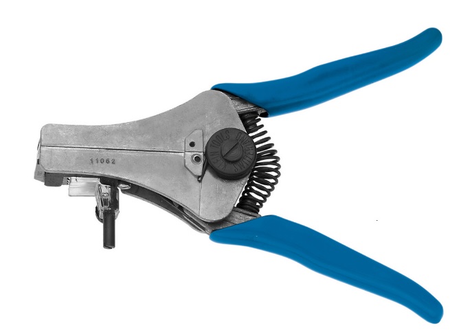 Strips From No. 10 To 22 Awg, Up To A Full 1" (24 M). No Nicking, Cutting Or Fraying Wire. Blades Also Available For 8 To 12 Awg And 16 To 26 Awg. Wire Is Automatically Gripped And Stripped With The Same Motion. Release Pressure And Jaws Automatically Open To Release Stripped Wire. For Clear Nylon-Jacket Conductors, Two Activations Are Required. Plastic Hand Grips For Comfort. Supplied With Adjustable Wire Stop As Standard Feature, To Assure Uniform, Precise Strip Length.