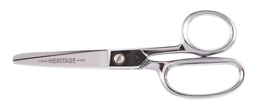 Specifications Blade Curvature: Straight Blade Edge: Standard Blade Material: Carbon Chrome Over Nickel Plated Blade Tip: Blunt Brand: Heritage Handed: Right Handle Orientation: Straight Handle Material: Metal Length Of Cut: 2 5/8'' Overall Length: 6 1/8'' Tension Adjustment: Screw California Residents Proposition 65 Warning Country Of Origin: Usa