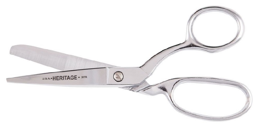 Blade Curvature: Straight Blade Edge: Standard Blade Material: Carbon Chrome Over Nickel Plated Blade Tip: Blunt Brand: Heritage Handed: Right Handle Orientation: Bent Handle Material: Metal Length Of Cut: 3 1/8'' Overall Length: 7 3/8'' Weight: 0.29 Lb Tension Adjustment: Screw Inside Ring Size (In.): N/A Country Of Origin: Usa