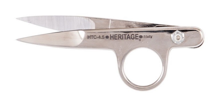 Specifications Blade Curvature: Straight Blade Edge: Standard Blade Material: Carbon Nickel Plated Blade Tip: Standard Brand: Heritage Handed: Right Handle Orientation: Straight Handle Material: Metal Length Of Cut: 1 1/8" Overall Length: 4 1/2" Tension Adjustment: Screw Inside Ring Size (In.): N/A Country Of Origin: Italy