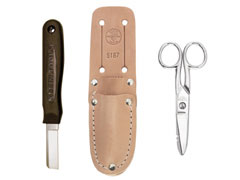 Klein 46037 Cable Splicer'S Kit 94051-4 New Cable Splicer'S Kit Includes Cable-Splicer'S Knife, Electrician’S Scissors, And 2-Pocket Leather Pouch. Cuts Cable, Telephone Wire, And Strips Insulation. Dimensions: 2-1/8" X 7-1/2" (54 Mm X 191 Mm) 46037 Kit Contains: Ca