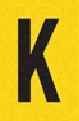 K Reflective Letter, 1 Inch X1.5 Inch Black On Yellow Pack Of 25