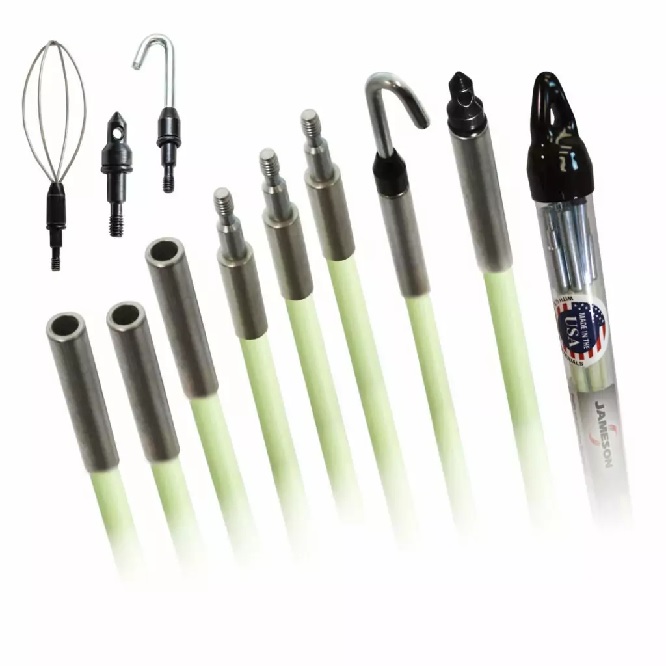 Jameson Is The Original Manufacturer Of Non-Conductive Fiberglass Glow Rods. The 35' Kit Is Perfect For Running Wire Through Drop Ceilings, Attics, Floors, Walls And Crawl Spaces. It'S High Strength And Flexibility Allows You To Handle Turns Easily Without Breakage. All Of Our Rods Feature The Same Size Threaded Ferrules For Maximum Versatility. Kit Includes Two 5' X 1/4" Rods, Two 2.5' X 1/4" Rods, Four 5' X 3/16" Rods, Two Bullet Nose With Eyelet, Two Hooks, One Whisk And Packaged In A Plastic Tube With Cap To Keep Rods And Accessories Together.