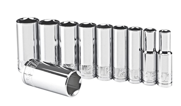This High-Visibility Deep Socket Set Has Easy-To-Read Markings For Quick Size Selection. Each One Of These Deep Well Sockets Is Constructed Of Tough Triple Chrome Plated Vanadium Steel For Maximum Strength And Durability To Take On Stubborn Nuts And Bolts Easily.