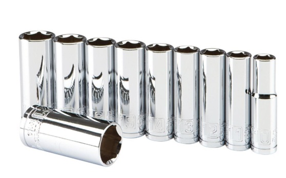 This High-Visibility Deep Socket Set Has Easy-To-Read Markings For Quick Size Selection. Each One Of These Deep Well Sockets Is Constructed Of Tough Triple Chrome Plated Vanadium Steel For Maximum Strength And Durability To Take On Stubborn Nuts And Bolts Easily.