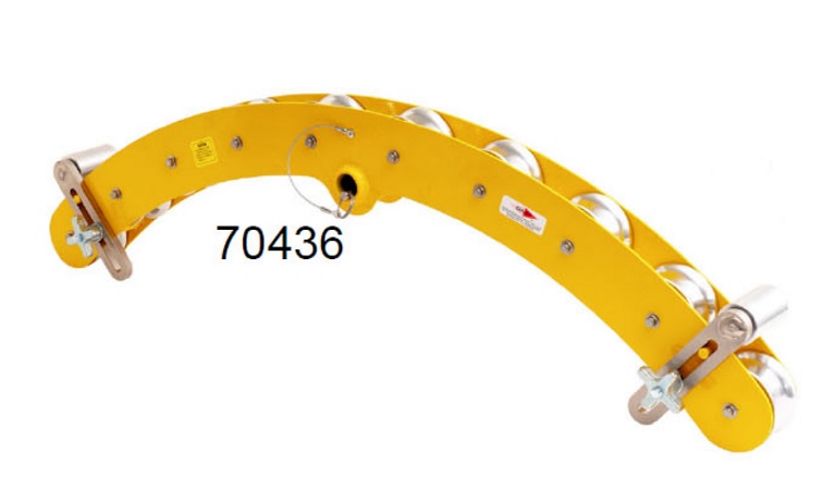 P/N 70436 90 Degree Corner Block W/Heavy Duty Aluminum Rollers These Heavy Duty Corner Blocks Are Used To Guide Adss (All-Dielectric Self-Supporting) To Evenly Distribute The Load On The Cable When Pulling Around Corners. • Accommodates Fiber Optic Cables Up To .688 In Diameter. • Working Load Limit 750 Lbs. • Works With The Mounting Bracket, Item Number 70550, (Not Included). Weight 20.8 Lbs. (9.43Kg)