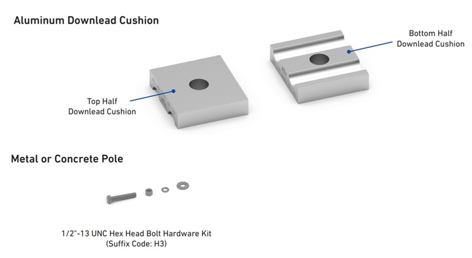 The Fiberlign Downlead Cushion Secures Opgw Downleads To Poles Or Structures While Minimizing Compressive Clamping Forces Which Could Be Transferred To The Optical Elements. The Downlead Cushion Is A Two-Piece Design With A Base And Cap That Has Parallel Grooves To Accommodate Specifi Ed Opgw Diameters. Various Mounting Accessories Can Be Included To Install The Downlead Cushion On Diff Erent Types Of Utility Poles And Structures, Including Lattice Towers.