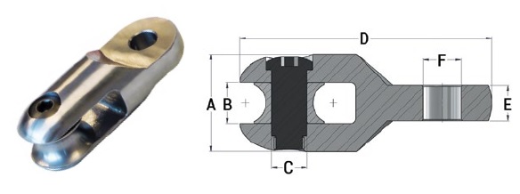 Part # 00522-040A Description Rope-Swivel Connector Without Sheave 3:1 Safe Working Load 25,000 Lb Max. Rope Diameter 7/8 Inch A 2 Inch B 1 Inch C 7/8 Inch D 6-7/32 Inch E 7/8 Inch F 15/16 Inch Weight 3.9 Lb Fits Line Swivel # 00505-040