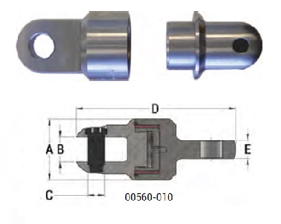 Part # 00560-010S Description Heavy Duty Breakaway Connector Marine Grade, Stainless Steel A 2-1/2 Inch B 1 Inch C 11/16 Inch D 6-1/2 Inch E 3/4 Inch Weight 4 Lb. Replacement Clevis Pin Kit # 00035-Hexs Note: 'S' Designates The Connector As A Marine Grade Stainless Steel Version, Intended For Use In A Marine Environment.