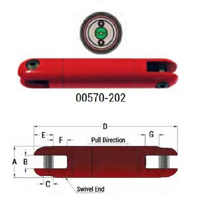 Part # 00570-202 Description Hdd Breakaway Swivel Pin Capacity 1 Pin A 1-1/4 Inch (32 Mm) B 1/2 Inch (13 Mm) C 13/32 Inch (10 Mm) D 5-3/4 Inch (146 Mm) E 3/4 Inch (19 Mm) F 1/2 Inch (13 Mm) G 9/16 Inch (14 Mm) Net Weight 1.1 Lb (0.5 Kg) Clevis Pin Kit 00020-Hex