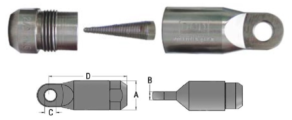 Maximum Cable Size 600 Mcm Compact Maximum Core Diameter 0.91 Inch 23.1 Mm A 1-7/8 Inch B 3/8 Inch C 5/8 Inch D 4-3/4 Inch Weight 1.73 Lb Power-Grip Components Include: Threaded Cone Nut # 24006-060 Tapered Insert # 24005-035 Body # 24007-035 Fits Line Swivels 00505-015 To 00505-030