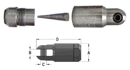 Maximum Cable Size 750 Mcm Compact Maximum Core Diameter 0.94 Inch A 2-1/8 Inch B 25/32 Inch C 11/16 Inch D 5-1/4 Inch Weight 2.80 Lb Power-Grip Components Include: 24006-075 Threaded Cone Nut 24005-070 Tapered Insert 24008-070 Body Fits Bridle Sling 3/8Inch And 1/2 Inch