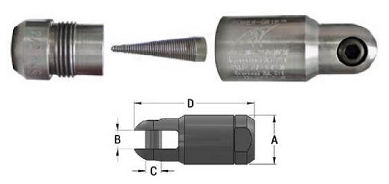 Maximum Cable Size 1750 Mcm Maximum Core Diameter 1.53 Inch A 2-3/4 Inch B 1 Inch C 7/8 Inch D 7-1/4 Inch Weight 6.20 Lb Power-Grip Components Include: 24006-175 Threaded Cone Nut 24005-125 Tapered Insert 24008-125 Body Fits Bridle Sling 3/8Inch And 1/2 Inch