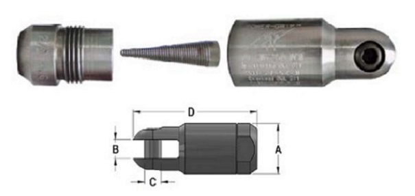 Maximum Cable Size 2000 Mcm Maximum Core Diameter 1.63 Inch A 2-3/4 Inch B 1 Inch C 7/8 Inch D 7-1/4 Inch Weight 5.90 Lb Power-Grip Components Include: 24006-200 Threaded Cone Nut 24005-125 Tapered Insert 24008-125 Body Fits Bridle Sling 3/8Inch And 1/2 Inch
