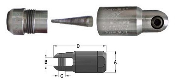Maximum Cable Size 2000 Mcm Compact Maximum Core Diameter 1.75 Inch A 2-3/4 Inch B 1 Inch C 7/8 Inch D 7-1/4 Inch Weight 4.70 Lb Power-Grip Components Include: 24006-200C Threaded Cone Nut 24005-125 Tapered Insert 24008-125 Body Fits Bridle Sling 3/8Inch And 1/2 Inch