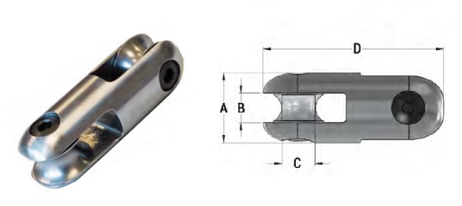 Rope-To-Rope Connector Is Used To Connect Two Ropes Of Up To 7/8 Inch Diameter. The Entire Product, Including Sheaves, Is Manufactured From Stainless Steel. The Sheaves Run On Standard Dcd Clevis Pins, Which Are Also Available As Spares