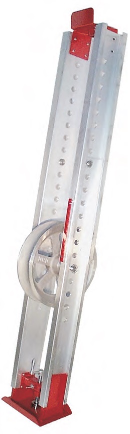 1. Pivoting Head - In Many Applications The Top Of The Brace Cannot Jam Against A Round Manhole, Instead It May Be Jammed Against A Square Cutout In The Roof Of The Manhole Vault. The Dcd Design/Cable Spinning Equipment Manhole Brace Has A Pivotable Upper Head Which Allows The Brace And Sheave To Be Accurately Aligned With The Duct Bank Without The Need For Temporary Shoring/Bracing. 2. Custom Extruded Channels - The Aluminum Channels Have Been Custom Extruded To An Engineered Design. Their Shape Provides The Maximum Strength-To-Weight Ratio While Also Providing A Smooth Sliding Action. The Channels Have Approximately Twice The Strength As The Standard Aluminum Channels Used In Similar Products, Allowing A Full 10,000 Lb Line Load To Be Applied At Either Entry Or Exit End Of The Pull. This Load Allows In Excess Of A 2:1 Safety Factor. 3. Fixed Angle - The Brace Operates At A Fixed Angle Of 10°. There Is An Acme Screwjack Assembly To Adjust The Height Of The Brace. This Same Screw Can Be Used To Relieve The Pressure On The Brace When It Is Being Removed. 4. Lifting Bar - The Lifting Bar Provided Allows The User To Easily Raise The Upper Extension Into Its Correct Position. This Bar Can Be Swung Out Of The Way And Stored When Not In Use. 5. Locking Pins - The Brace Uses Separate Locking Pins For Each Set Of Channels. Using Two Locking Pins Ensures That They Do Not Interfere With The Desired Placement Of The Sheave Or Quadrant. 6. Fixed Width - This Fixed Width Brace Is Designed To Accept Quadrants Or Sheaves Up To 8” Wide. Since Correct Alignment To The Duct Entrance Is Now Possible With The Rotating Head, Even Use Of Only A 4" Wide Sheave Is No Problem Inside The 8" Available Width – The Sheave Will Simply Float Between The Side Rails Always Picking Up The Most Favorable Alignment. 7. Construction - Although The Side Channels Are Extruded Aluminum, The Upper And Lower Assemblies Are Made Out Of Steel. While Increasing The Overall Weight By A Few Pounds, The Added Strength Of Steel Is Necessary In Order To Match The Strength Of The Extruded Side Channels. The End Result Is A Brace That Can Operate Equally At Either End Of The Pull And One That Will Match The Safe Working Loads Of All Other Dcd Design/Cable Spinning Equipment Manhole Products At 10,000 Lbs. The Base Section Is Used In All Assemblies And Comes Complete With 2 Locking Pins And 1 Sheave Pin. The Short, Medium Or Long Extension Should Be Ordered To Suit The Height Range Requirement.