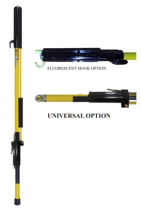 Catalog # 8106-U-F Fixed Length Shotgun Stick W/External Operating Rod With Universal Fitting On Base End And Fluorescent Hook Options. Length 6 Feet 6 Inches Weight 6 Lbs.