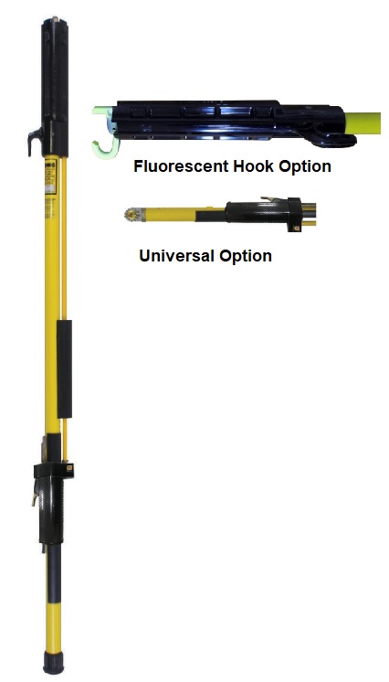 Catalog # 8110-U-F Fixed Length Shotgun Stick With External Operating Rod With Universal Fitting On Base And Fluroescent Hook Options. Length 10 Feet 6 Inches Weight 7.2 Lbs. Optional Case Not Included # C-8110