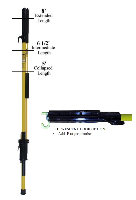 Catalog # 8158-80-F Tel-O-Pole® Shotgun Stick With Fluorescent Hook Option Retracted Length 5 Ft. 1 Inch Operating Lengths 6’ 6," 8’ Weight 5.8 Lbs. Optional Case Not Included # C-35